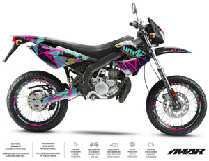 The Graphic decals for Derbi Senda Xtreme 50cc (2006-2010) is designed for those looking for a bold and dynamic look. With its vibrant graphics and unique design, this deco kit will give your bike an energetic and striking style while providing optimal protection against scratches and the elements.