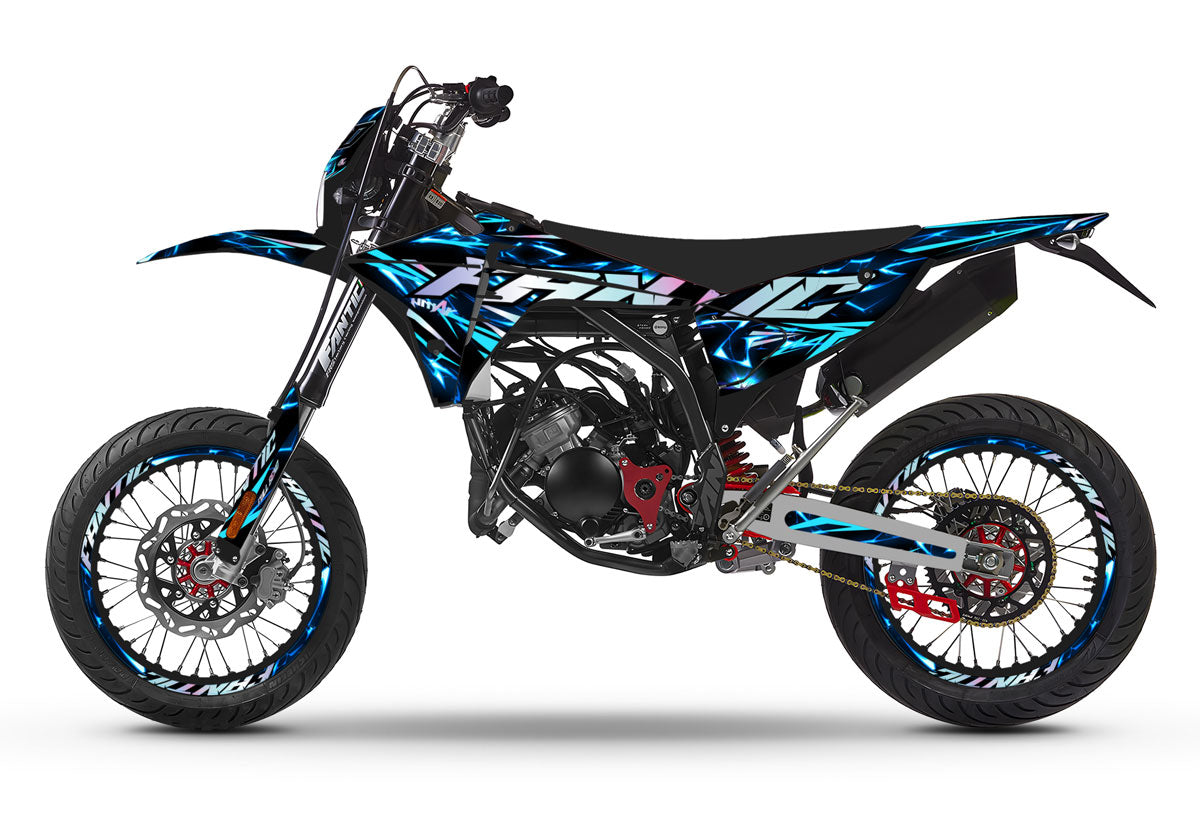 Raise the tone and the wheel with the Graphics-kit Wheelyz for Fantic 50cc (2023 to 2026). Designed for stunt enthusiasts and urban culture, this dynamic design transforms your motorcycle graphics-kit into a true style statement. Made from premium 450-micron "Armor" vinyl, it absorbs shocks while offering an aggressive look inspired by the modern motocross graphics-kit.