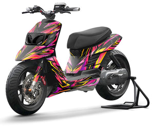 Elevate the style of your scooter to new heights with our custom graphic coverings for the MBK Booster RX BCD. Because the BCD shells have much more aggressive lines and specific air intakes compared to the original, we have developed dedicated cutting patterns. This kit fits with surgical precision on the RX front face, the guard, and the rear shells of the renowned design brand. Our high-performance vinyls do more than transform your look: they form an ultra-resistant shield against rubbing, urban splashes, and sun fading.