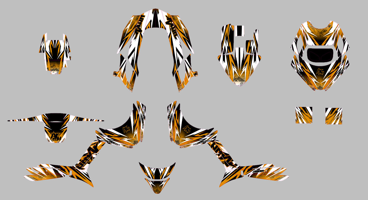 Maximize the visual impact of your two-wheeler with the Graphics-kit Expander. Specially designed for the BCD RX fairings on MBK Booster and Yamaha BW's, this kit uses stretched and dynamic lines to emphasize the width and aggressiveness of your scooter. Made from premium vinyl, it ensures extreme durability and effective protection against external damage.