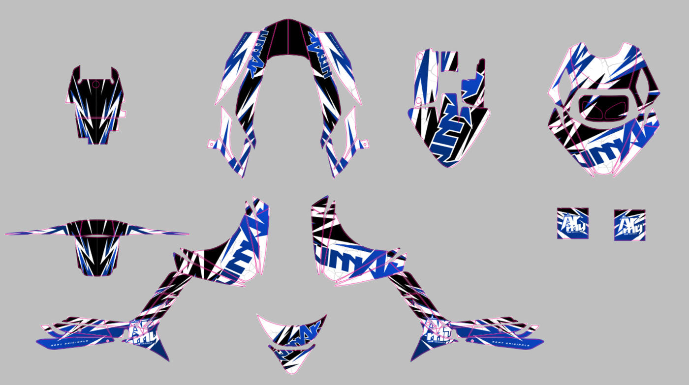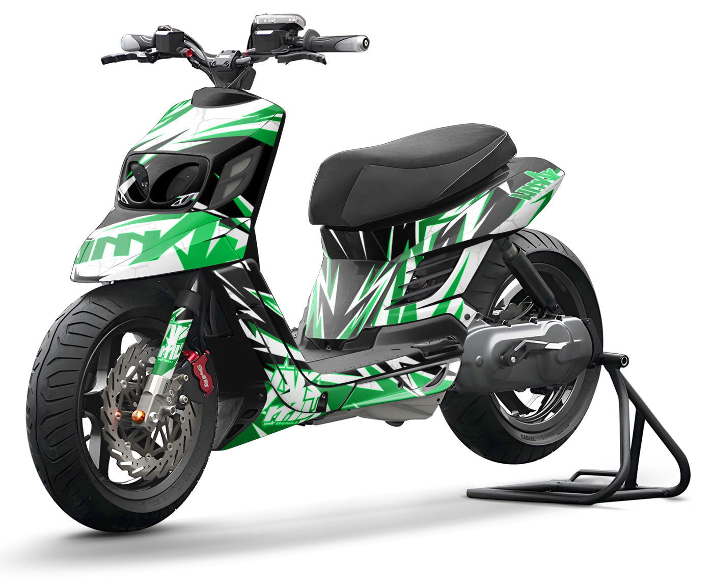 The Graphics-kit Zandyr was designed for tuning enthusiasts who want to stand out. If you have fitted your MBK Booster or Yamaha BW's with the famous BCD RX fairings (front face and rear shells), this kit is the ultimate covering to complete your project.