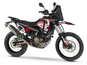 Take a leap into the past on the handlebars of this year's new release with the Graphics-kit History for Rieju Aventura 307R (2026). This neo-retro design, inspired by desert pioneers and the iconic liveries of the 80s, gives your modern trail bike a timeless soul. Made from premium 450-micron "Armor" vinyl, this motorcycle graphics-kit protects your 307R while celebrating the golden age of adventure.