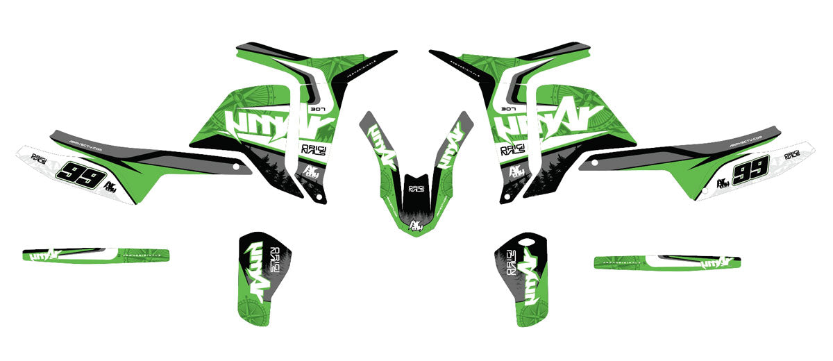 Does the kit fit original and aftermarket plastics (UFO, Acerbis, Cycra)?Our templates are extremely precise. When placing your order, it is crucial to specify the year, the exact model, and whether you have changed your fairings to brands like UFO, Acerbis, Polisport, or Cycra. We will adjust the cutouts accordingly for a perfect fit.