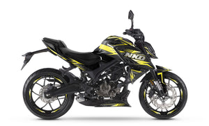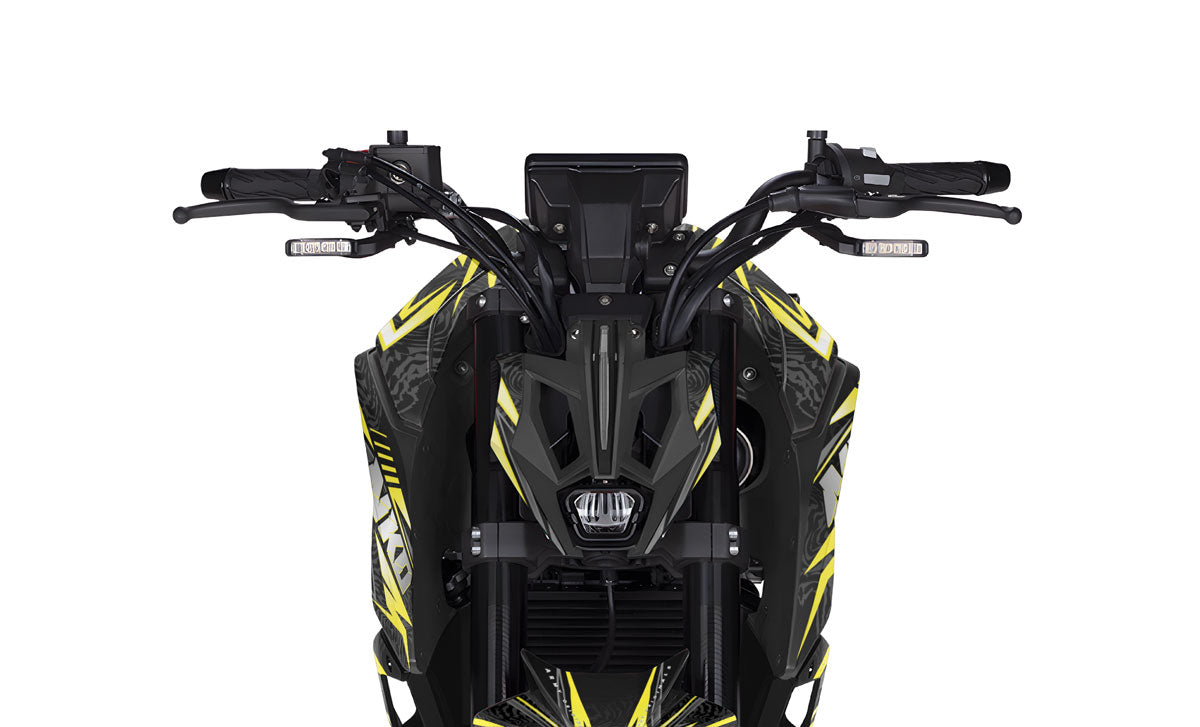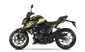 The Graphics-kit Alpha for the Rieju NKD 125 is the exclusive gear for riders born to lead. The 2026 NKD 125 is a compact roadster with bold aggression; with this graphics-kit featuring a purely stately aesthetic, your machine trades its streetwear for a true custom suit, becoming the ultimate predator of the urban jungle.
