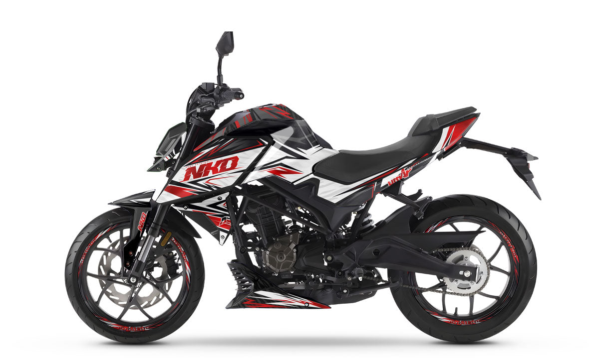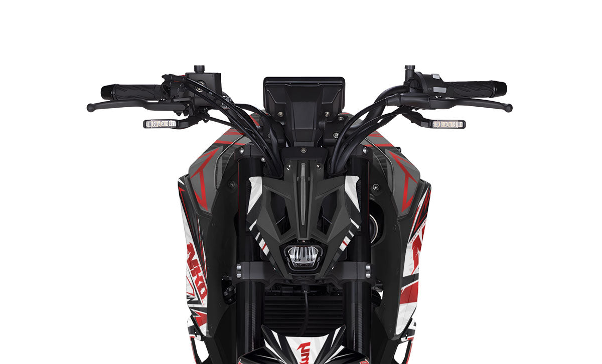 Ignite the spark and make an electrifying presence with the Graphics-kit Arko for Rieju NKD 125 (2026). Designed for riders who want to combine the agility of a streetfighter with pure, radiant energy, this graphics-kit unleashes a high-voltage aesthetic, blending sharp electric arcs and vibrant plasma colors on a dark background. Made from premium 450-micron "Armor" vinyl, it withstands urban impacts and provides full protection for your plastics, while guaranteeing you the Rieju graphics that is the most magnetic, luminous, and striking in the entire city.