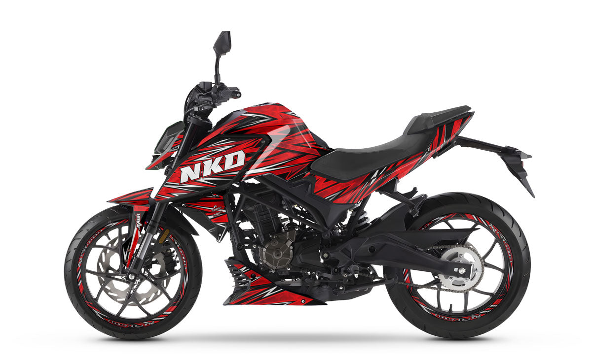 The Graphics-kit Cutvector for the Rieju NKD 125 is tailor-made for riders who have the trajectory in their blood. The 2026 NKD 125 is a roadster with sleek, aggressive styling; with this graphics-kit featuring a geometric and ultra-dynamic aesthetic, your machine adopts the posture of a true arrow, ready to pierce through the urban jungle with clockwork precision.
