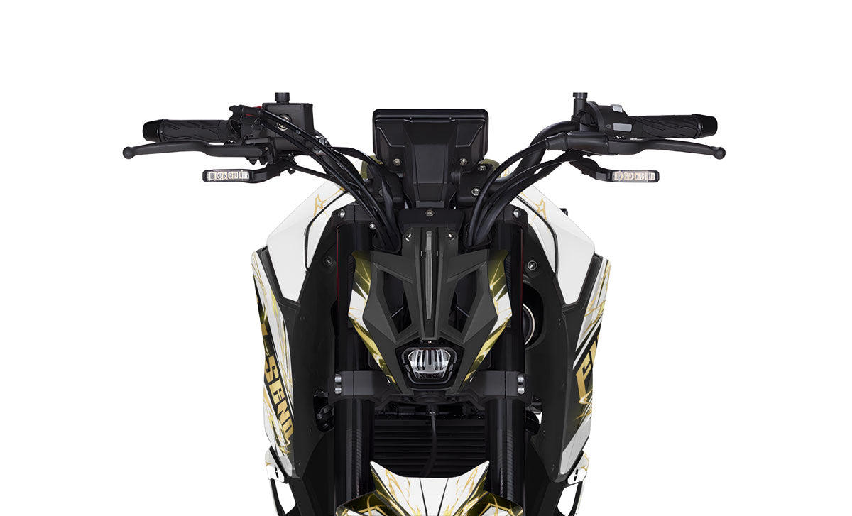 The Haymaker design makes no compromises. It revolves around the visual of impact: large broken vectors, violent contrasts, and fluorescent shades that "break" the original line of the bike. It’s the essential Rieju design for riders seeking a "Streetbrawl / Stunt" style, capable of emphasizing the stocky and muscular side of this Spanish streetfighter.