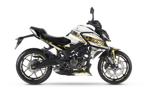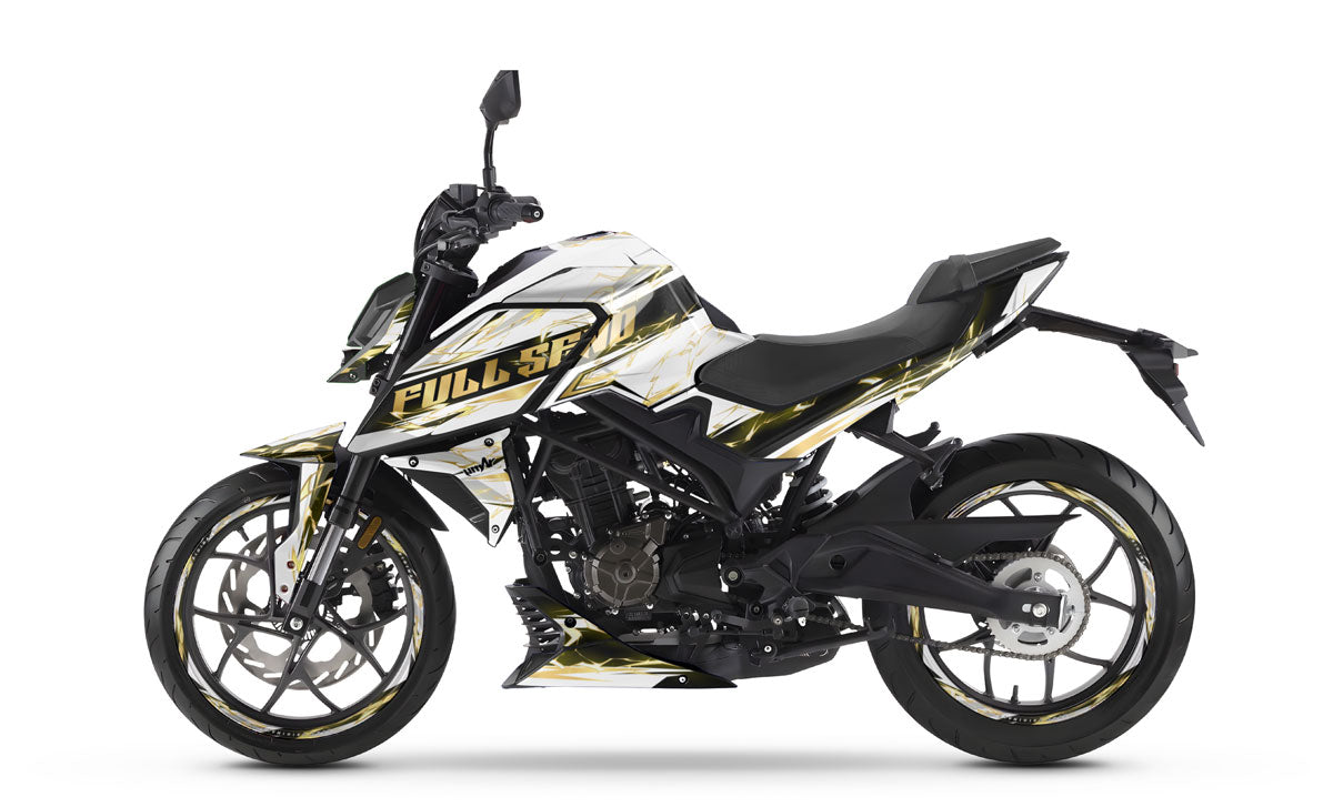 The Graphics-kit Haymaker for the Rieju NKD 125 is designed for hot-blooded riders who want to assert their territory. The 2026 NKD 125 is a compact roadster built to weave through traffic everywhere; with this graphics-kit featuring an aggressive and devastating look, your two-wheeler becomes a true adrenaline rush, showing off a thrilling arrogance at every red light.