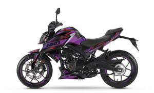 The Graphics-kit Metal Style for the Rieju NKD 125 is crafted for urban riders who want to give their machine an unprecedented presence and visual weight. The NKD 125 is a compact and agile roadster; with this graphics-kit featuring a purely industrial aesthetic, your two-wheeler creates a fascinating contrast by adopting the appearance of a raw metal block ready to break the asphalt.