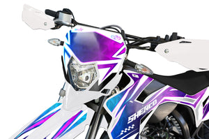 Transform your Sherco 50cc with the R-Force deco kit. Eco-solvent 8 color printing, ultra-resistant vinyl, precise cutting And premium finishes : mate, brilliant, holographic, chrome, fluorescent… 100% customizable for an aggressive and dynamic look. Easy pose and fast delivery for a perfect customization!