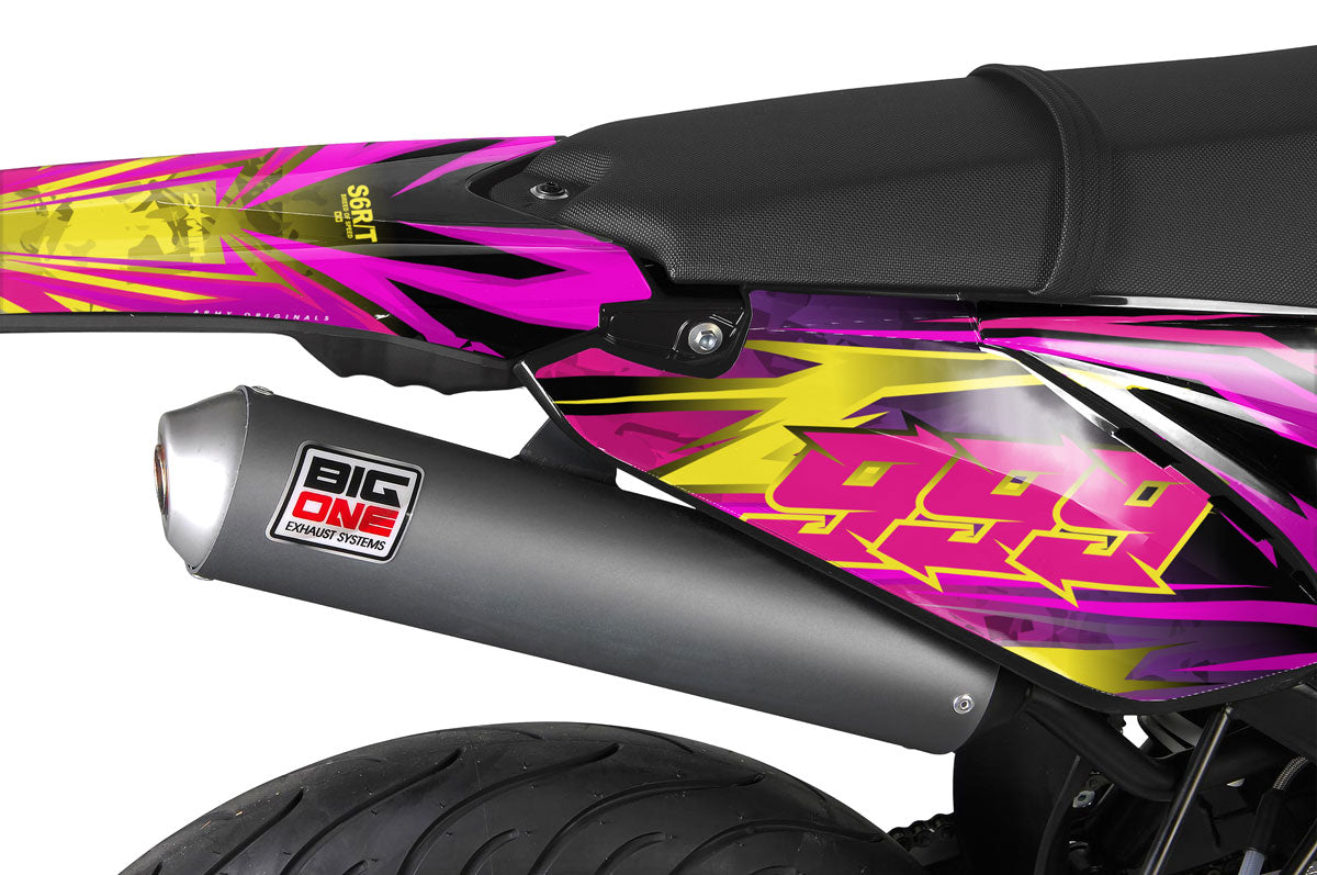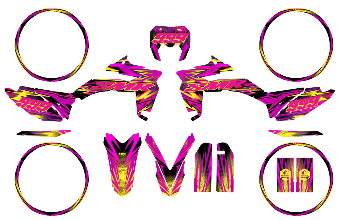 Our complete kits are designed for plastics. However, you can optionally add rim stripes matching your design to perfect the Supermotard look of your Sherco 50.