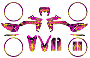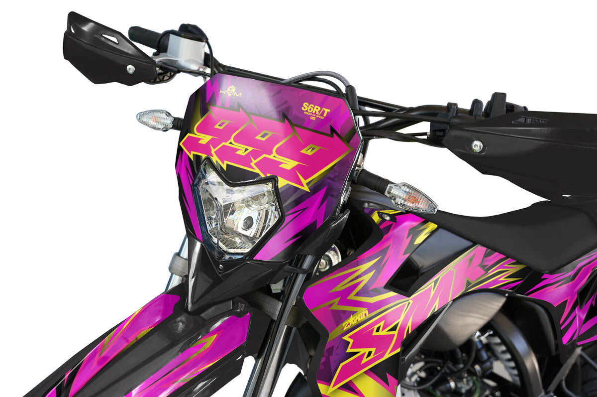 Bet on humor and originality with the Graphics-kit Fakerz for Sherco 50cc SM and Enduro (2017 to 2026). This unique design plays with marketing codes by twisting famous logos in a striking "Street Trash" style. Printed on a high-protection vinyl, it dresses your bike with a rebellious look while effectively protecting your fairings.