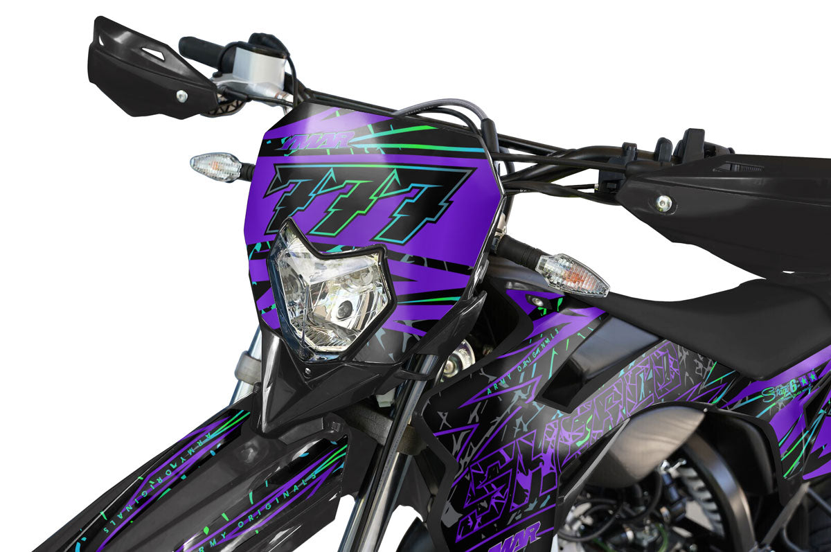 The Sherco 50cc is the ultimate choice for young riders, and our decal kits are designed to enhance this iconic racing design. Whether you ride a Sherco SM-R, a SE-R, or special editions like the Blackmoon and the Silver, we know every curve of the original fairings. Unlike standard products, our templates include specific parts for the radiator vents, side panels, and even the number plate backgrounds for an instant factory look. Each decal kit for Sherco 50 is made with thick, high-quality vinyl, offering strong protection against stone chips and daily scratches, thus preserving the value of your bike.