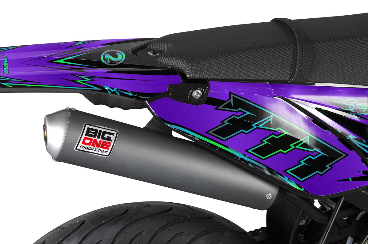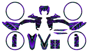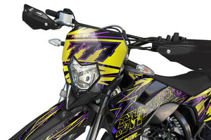 The Fracture Graphics-kit is designed to break the rules. Intended for Sherco 50cc (SM and Enduro), this model imposes a powerful and unstructured look. With its graphics reminiscent of shattered glass or shifting tectonic plates, it gives an impression of speed and energy even when standing still.
