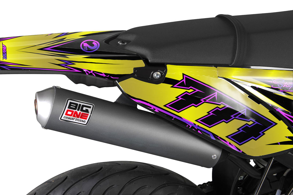 Our complete kits are designed for plastics. However, you can optionally add rim stripes matching your design to perfect the Supermotard look of your Sherco 50.