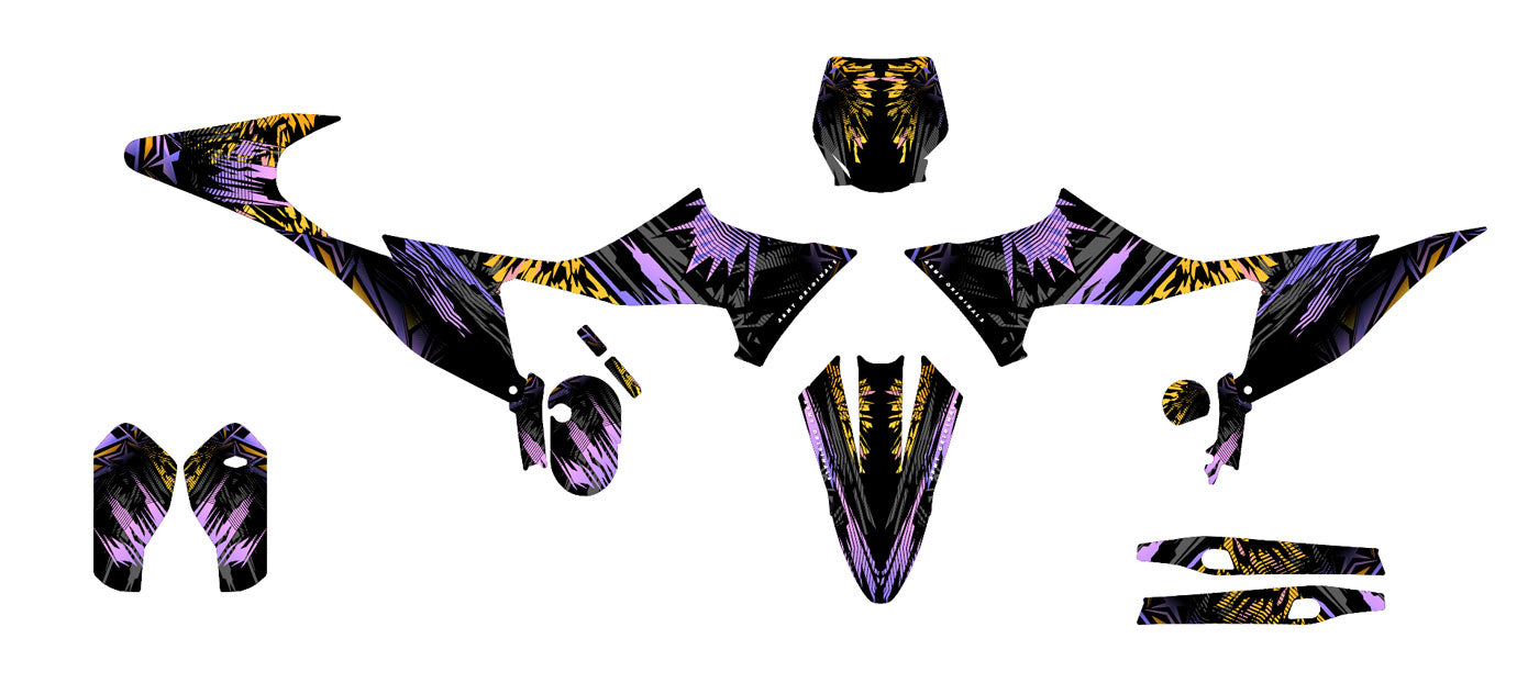 Our basic kits include the vents, plates, mudguards, and fork guards. We also offer matching designs as an additional option for the rim edges and swingarms to provide complete visual harmony for your electric motocross.