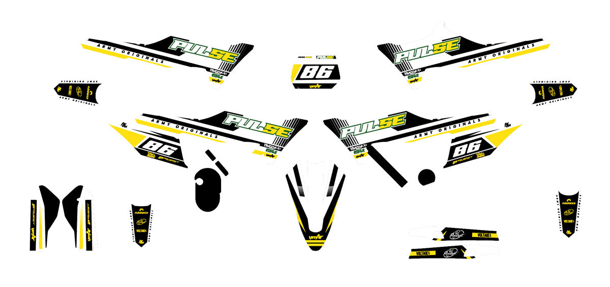 Our basic kits include the vents, plates, mudguards, and fork guards. We also offer matching designs as an additional option for the rim edges and swingarms to provide complete visual harmony for your electric motocross.