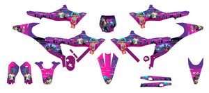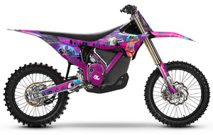 The Graphics-kit Vice City for Stark Varg is designed for riders who want to break traditional motocross rules with a good dose of fun and nostalgia. The Varg is a cutting-edge electric machine that redefines the future of riding; with this graphics-kit featuring a "Synthwave" aesthetic, your bike gets a delightfully anachronistic look, becoming a true pop icon on dirt tracks.
