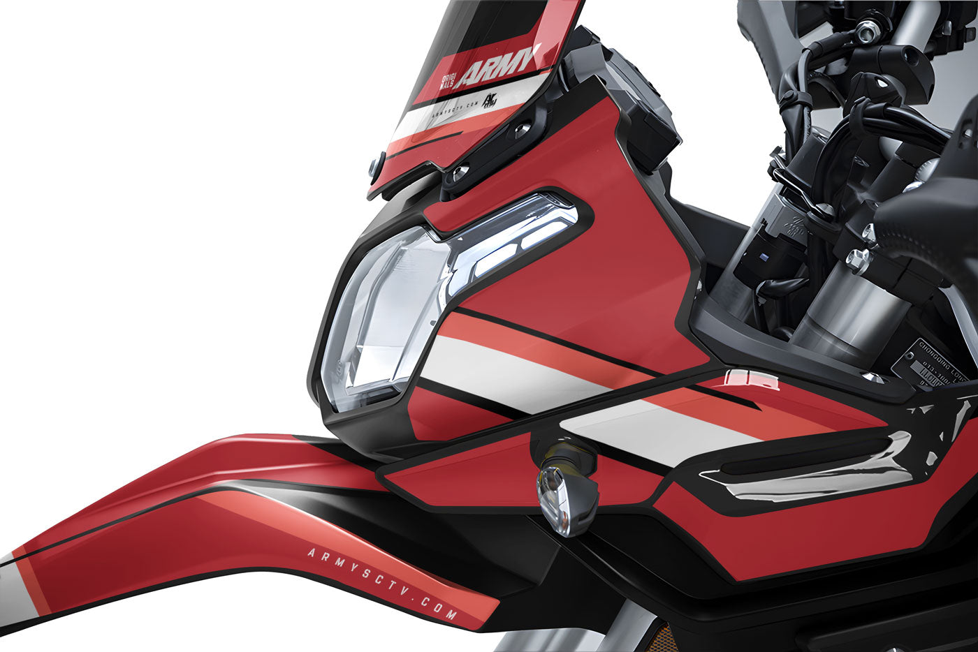 High-quality decoration kits for all your vehicles: 50cc, 125cc (as shown here on the Beta RR), Motocross, Supermoto, as well as Electric bike and Large Scooter. Made with premium materials ArmySCTV, our stickers ensure easy bubble-free application and extreme durability. Choose a semi-custom or fully custom design and give your machine a unique style.