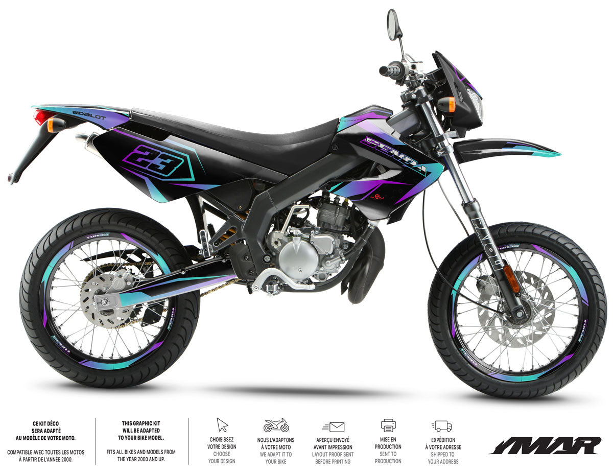 🎨 Kit pegatinas Lys para Derbi Senda Xtreme 50cc (2006-2010) : Aporta un aspecto refinado y elegante a tu moto con este kit de decoración Lys, que combina estilo, rendimiento y protección para tus aventuras en supermotard.