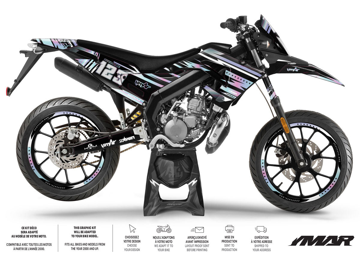 🎨 Kit pegatinas Dream para Derbi Senda X-treme SM 50cc : Ofrezca a su moto un diseño onírico y cautivador, combinando suavidad estética y robustez para sus aventuras en supermotard.