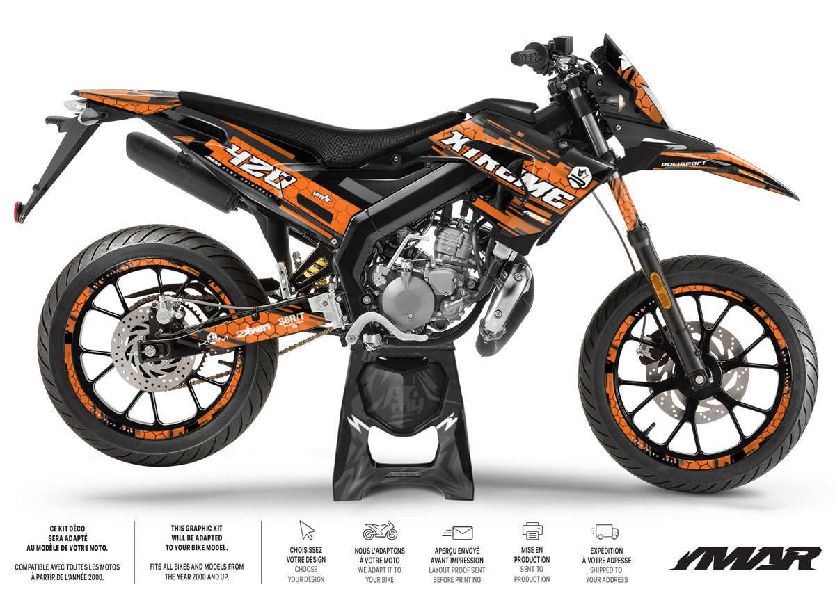 🎨 Kit pegatinas Spinner para Derbi Senda X-treme SM 50cc : Ofrezca a su moto un diseño cautivador y enérgico, combinando estética y robustez para sus aventuras en supermotard.