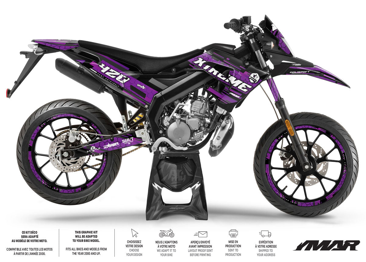 Nuestros kits decorativos aportan un estilo único y cautivador a su moto. Ideal para los apasionados que desean destacar.