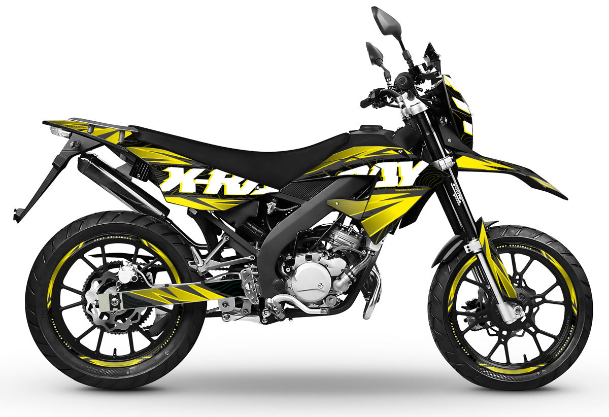 El kit deco Magix ofrece a su Masai X-Ray 50cc (2019-2025) un aspecto dinámico y cautivador. Ideal para los aficionados al supermotard que quieren brillar en la carretera, en competiciones o en las redes sociales.