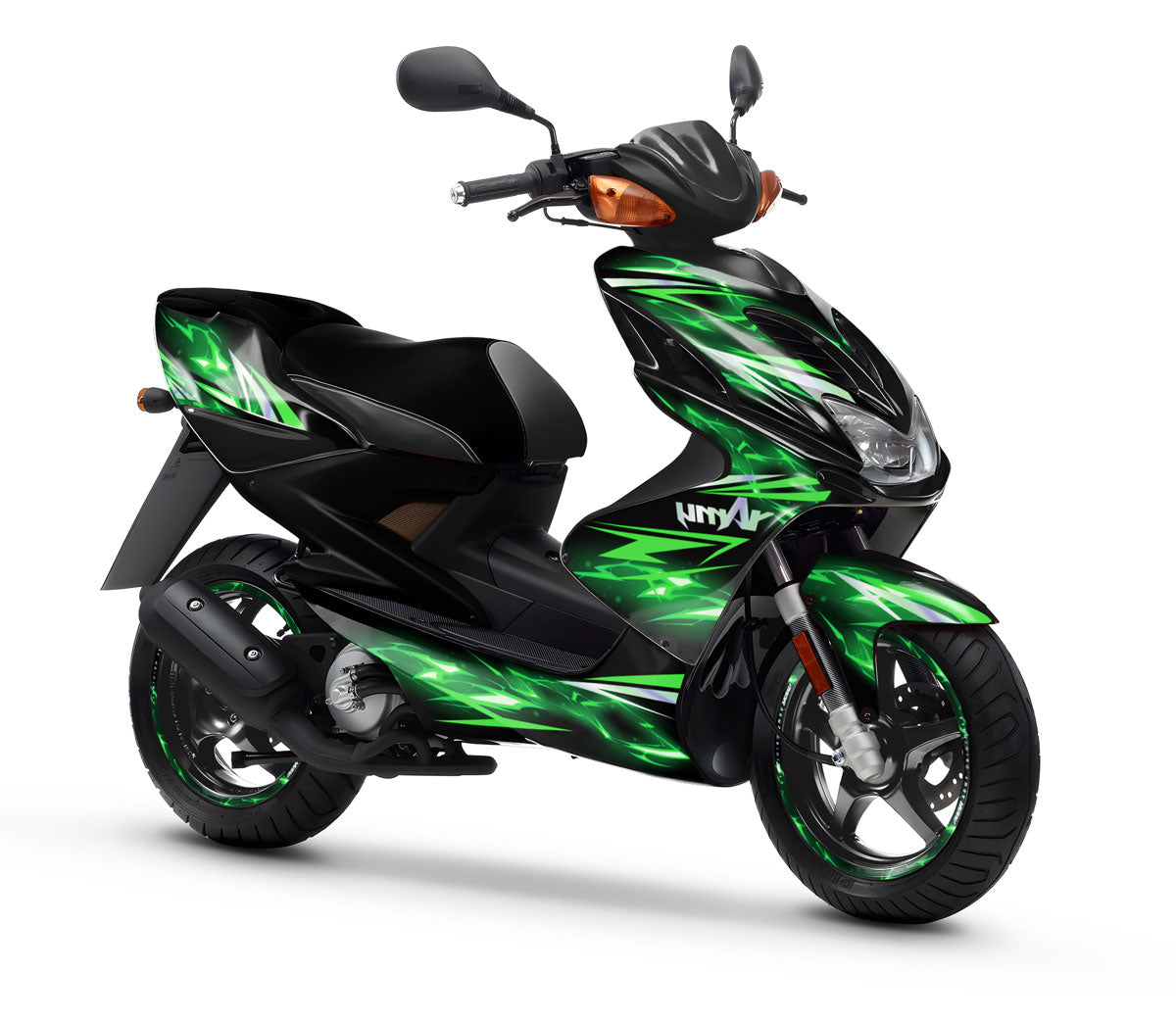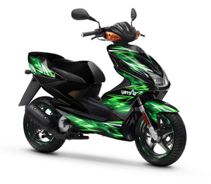 El diseño Wheelyz domina el arte del caos organizado y la cultura urbana. Se articula alrededor de texturas crudas, salpicaduras de pintura virtuales y tipografías street-art que dan la impresión de que tu scooter acaba de salir de un skatepark underground. Es la decoración Nitro / Aerox absoluta para los riders que buscan un estilo "Rider Loco / Acróbata", ofreciendo a este scooter 50cc mítico una presencia ultra-dinámica, rebelde e infinitamente divertida.