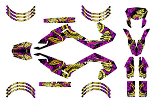 Da a tu Aprilia RX 50cc (2018-2025) un aspecto feroz con el kit pegatinas Dragon, una creación original de ArmySCTV. Inspirado por la potencia y la agresividad, este diseño único está pensado para pilotos que quieren un estilo impactante e inolvidable.