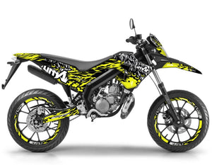 La Aprilia SX 50 es la heredera del saber hacer de Noale, y nuestros juegos de decoración están a la altura de esta reputación. Hemos desarrollado plantillas ultrafinas que cubren todas las generaciones de esta máquina icónica. Para los propietarios de Aprilia SX y RX (modelos 2006 a 2017), nuestros juegos se ajustan perfectamente a los carenados con líneas afiladas originales de Derbi. Si posee la versión más reciente, la Aprilia SX / RX (modelos 2018 a 2026), nuestros diseños incorporan las nuevas formas de las placas laterales y del guardabarros. Usando un vinilo de alta cohesión con protección UV, garantizamos que su juego no se decolorará, incluso después de años de exposición, al tiempo que protege sus plásticos contra rozaduras y salpicaduras.