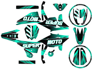 Su juego se imprime en el material de su elección (Holográfico, Cromo, Fluorescente...) con el acabado deseado (Con purpurina, Mate, Brillante). Gracias al adhesivo reforzado y a la tecnología "Air Free", la colocación en sus carenados es sencilla y sin burbujas. Su pedido se corta con cuidado y luego se envía con protección reforzada.