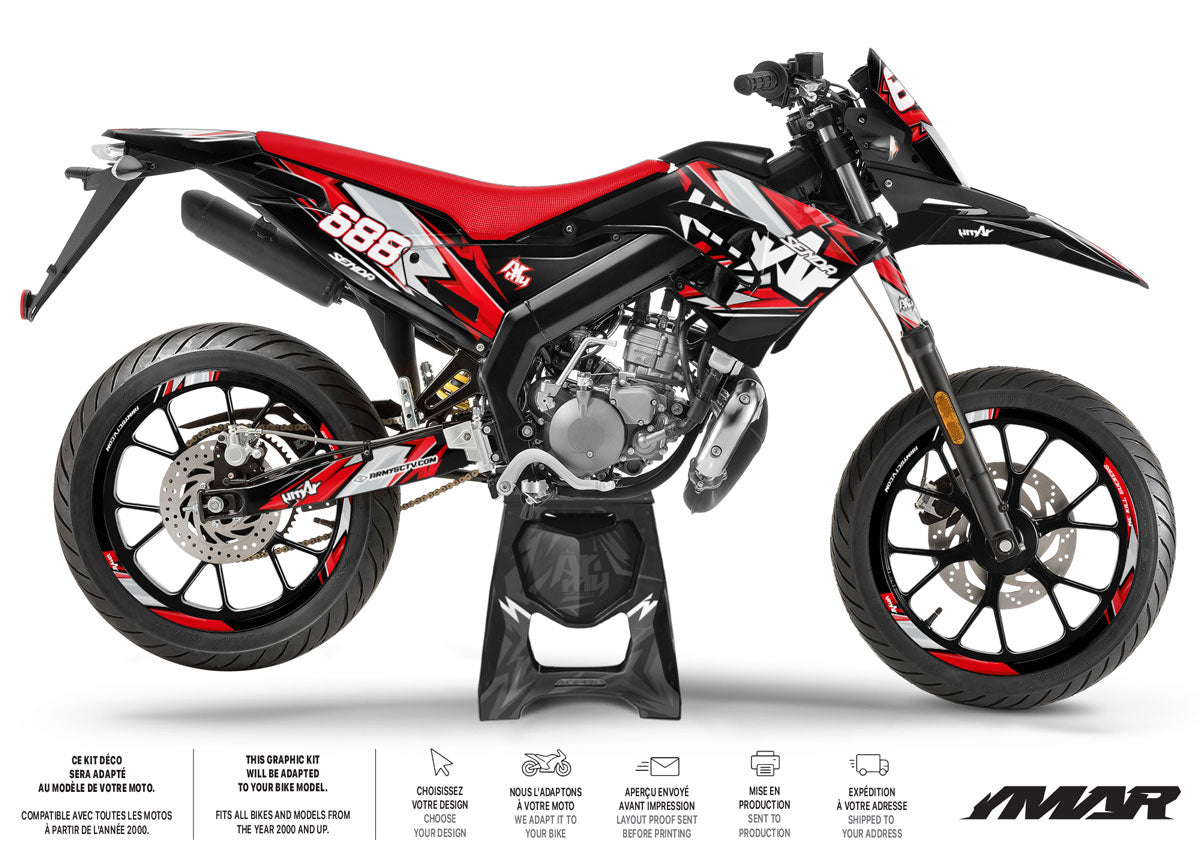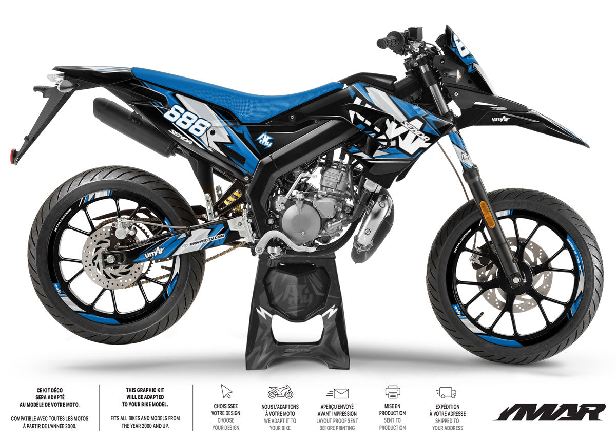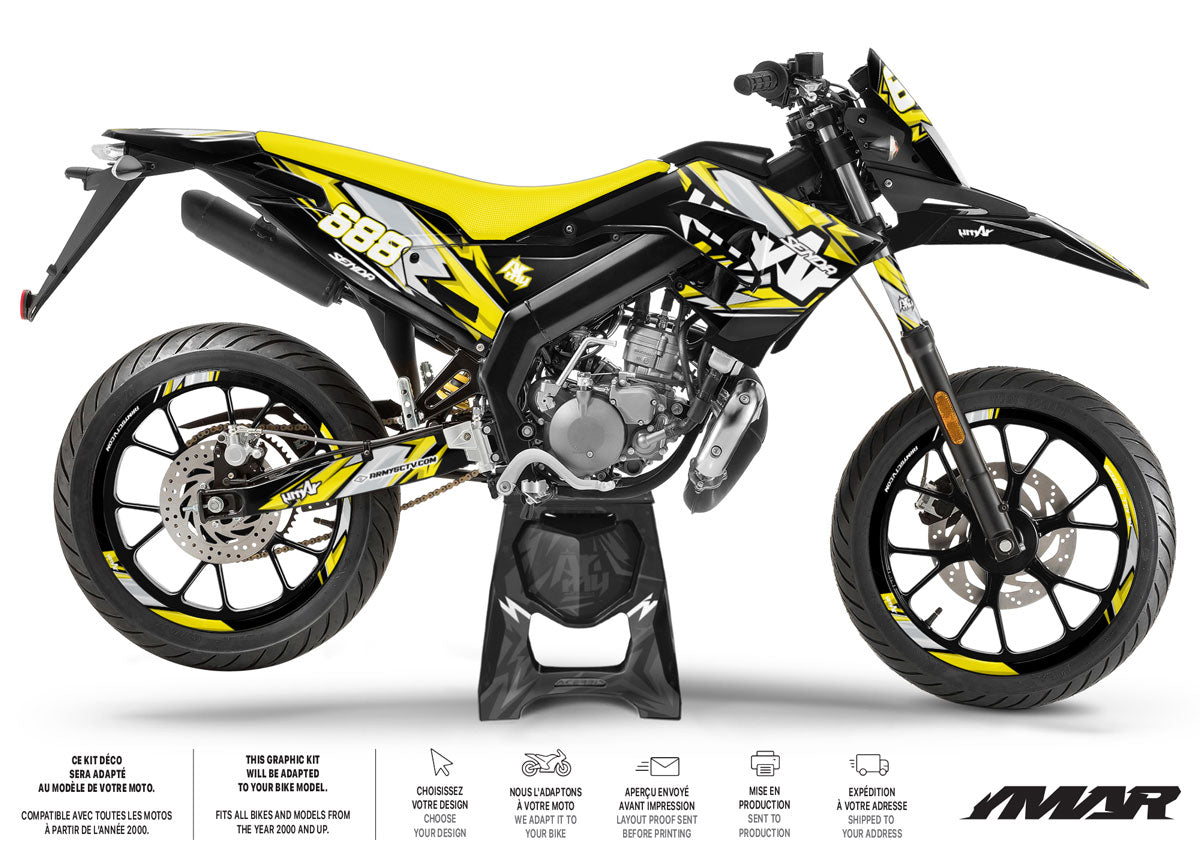 🎨 Kit pegatinas Racing para Derbi Senda X-treme SM 50cc : Ofrezca a su moto un aspecto dinámico y racing, combinando estilo de competición y robustez para sus aventuras en supermotard.