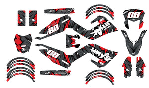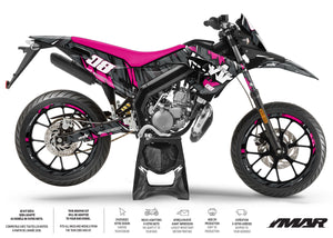 El Kit pegatinas Speeder para Derbi Senda X-treme SM 50cc está diseñado para los apasionados del supermotard que buscan un diseño rápido y dinámico. Inspirado en los gráficos de velocidad y las curvas fluidas, este kit déco le da a tu moto un aspecto deportivo y contundente, al mismo tiempo que ofrece una protección óptima para tus trayectos por carretera y terrenos.