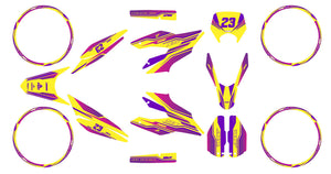 Ofrece a tu Aprilia SX/RX 125cc (2018-2023) un estilo moderno y original con el Kit pegatinas Purplesky, una creación firmada por ArmySCTV. Inspirado en los tonos profundos del violeta y un universo gráfico audaz, este diseño único transforma tu moto en una verdadera obra visual.