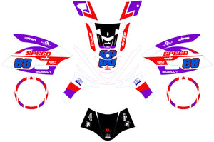 Muestra los colores del rendimiento con el Kit de pegatinas Pramac para Piaggio Zip SP2 (2001 à 2016). Este diseño legendario, famoso en los circuitos de GP, resalta la agresividad y la compacidad del Zip SP2. Fabricado en vinilo premium ultra grueso, ofrece una protección "Armor" a tus carenados mientras garantiza un estilo "Factory" profesional que no pasará desapercibido.