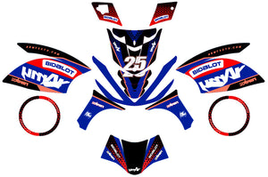 Mida con precisión la zona a decorar en su kit deco moto 50cc. Utilice un lápiz no permanente para marcar ligeramente los contornos y facilitar la alineación del vinilo durante la colocación.