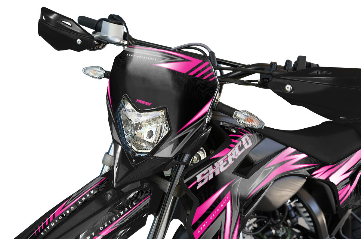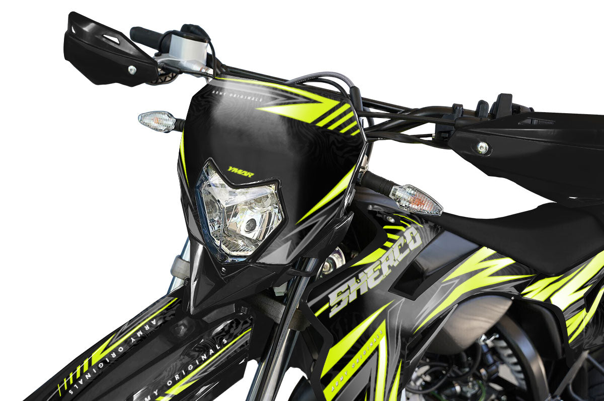 Ya sea que seas un apasionado del supermotard o del enduro, el kit déco Alpha le da a tu Sherco 50cc un estilo impactante y moderno. Su diseño audaz te hará destacar en la carretera y en las redes sociales.