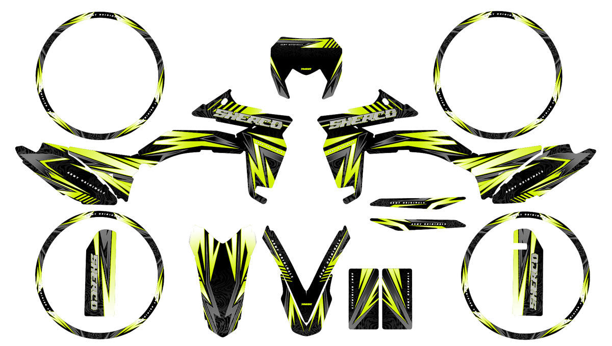 Kit pegatinas Sherco 50cc Alpha – Diseño Único y Resistencia Máxima