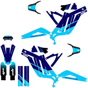 Nuestros juegos básicos incluyen las rejillas, placas, guardabarros y protecciones de horquilla. Ofrecemos como opción adicional diseños a juego para los bordes de las llantas y los brazos oscilantes para brindar una coherencia visual total a tu motocross eléctrico.