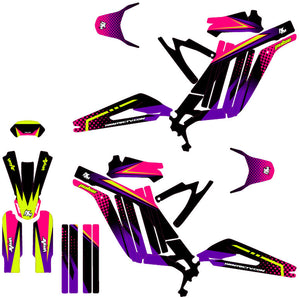 Nuestros juegos básicos incluyen las rejillas, placas, guardabarros y protecciones de horquilla. Ofrecemos como opción adicional diseños a juego para los bordes de las llantas y los brazos oscilantes para brindar una coherencia visual total a tu motocross eléctrico.