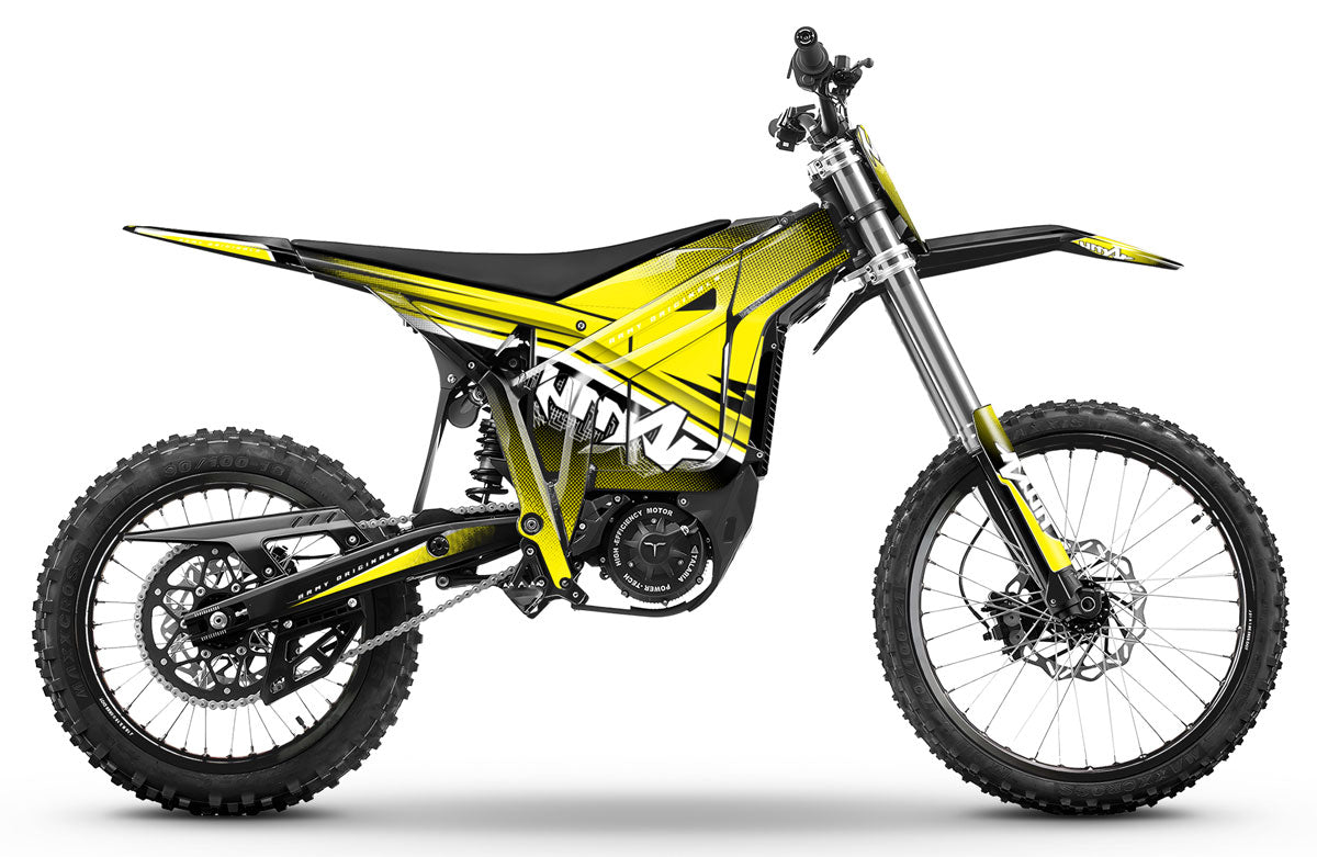 Nuestros juegos básicos incluyen las rejillas, placas, guardabarros y protecciones de horquilla. Ofrecemos como opción adicional diseños a juego para los bordes de las llantas y los brazos oscilantes para brindar una coherencia visual total a tu motocross eléctrico.