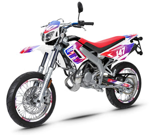 Løft stilen på din maskin til nye høyder med våre tilpasningsløsninger for Derbi DRD Racing 50cc. Vi har utviklet maler med kirurgisk presisjon spesielt for generasjonen 2004-2010, kjent for sine strømlinjeformede karosserier og unike frontplate. Enten du kjører en SM (Supermotard) eller R (Enduro) versjon, passer våre sett perfekt til hver kurve på karosseriet ditt. Ved å bruke vinyl av høy ytelse, garanterer vi ikke bare et "Factory"-utseende, men også en solid beskyttelse mot veistøv, riper og gulfarging forårsaket av UV-stråler.