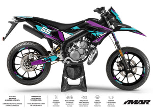 🎨 Dekalsett Stream for Derbi Senda X-treme SM 50cc : Legg til en strømlinjeformet og moderne stil til motorsykkelen din, som kombinerer estetikk og robusthet for dine supermotard-eventyr.