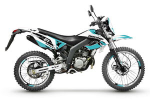 🎨 Dekalsett Skarp for Masai Rider 50cc (2012-2025) : Gi motorsykkelen din et dristig og dynamisk utseende med dette moderne designet, som kombinerer ytelse, beskyttelse og en unik stil for dine supermotard- og Enduro-eventyr.