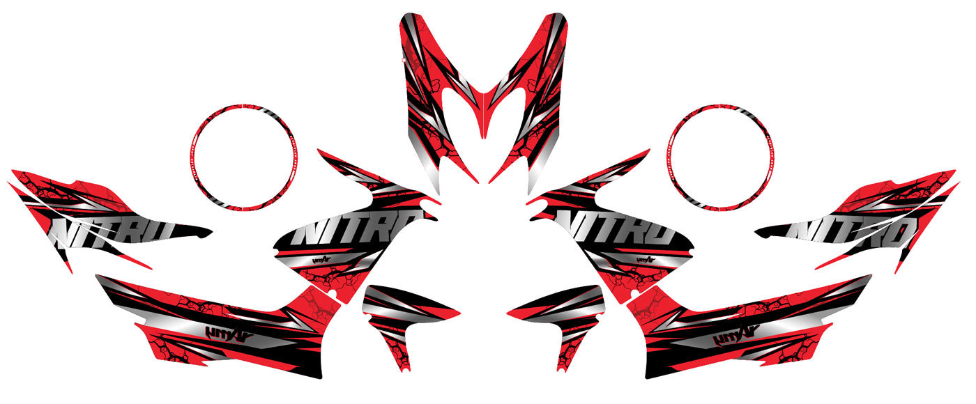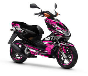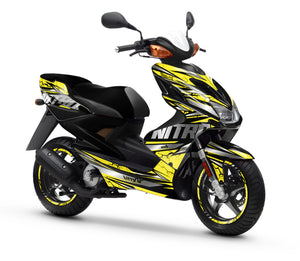 Deko-sett Illuzion for Yamaha Aerox / MBK Nitro er ikke bare en enkel pynt: det er en synsbedrag. Nitro har karosserideler med svært komplekse linjer; Illuzion-designet bruker dette som lekeplass for å skape grafikk som ser ut til å bølge, vri seg og leve ved minste bevegelse.