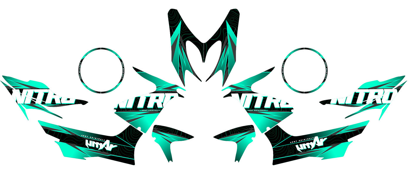 Sett ditt blir trykt på vinyl av høy kvalitet med "Air Free"-teknologi som hindrer bobler. Etter at du har valgt overflatebehandling (blank, matt eller krom), blir hver del nøye skåret ut i vårt verksted og sendt i sikker emballasje, klar til å festes på scooteren din