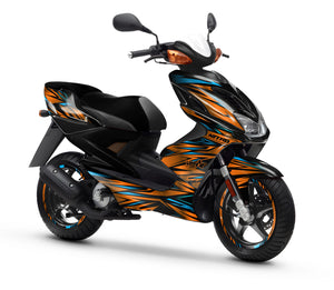 Sett ditt blir trykt på vinyl av høy kvalitet med "Air Free"-teknologi som hindrer bobler. Etter at du har valgt overflatebehandling (blank, matt eller krom), blir hver del nøye skåret ut i vårt verksted og sendt i sikker emballasje, klar til å festes på scooteren din