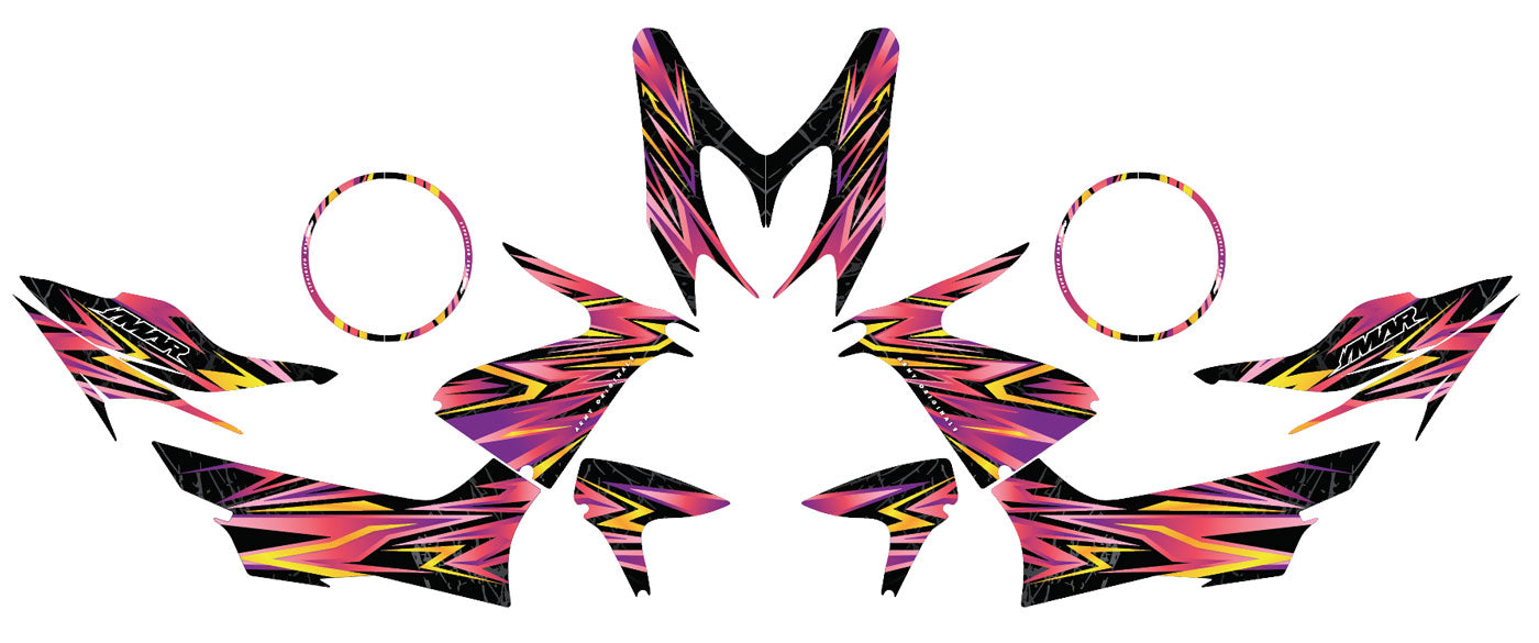 Sett ditt blir trykt på vinyl av høy kvalitet med "Air Free"-teknologi som hindrer bobler. Etter at du har valgt overflatebehandling (blank, matt eller krom), blir hver del nøye skåret ut i vårt verksted og sendt i sikker emballasje, klar til å festes på scooteren din