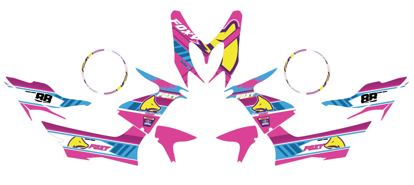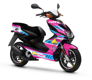 Deko-sett Pink Fox for Yamaha Aerox / MBK Nitro er laget for førere som nekter å gå ubemerket hen. Ved å blande den aggressive stilen fra fabrikkens motocross-linjer med en elektrisk magentarosa farge som er høyt verdsatt i bykulturen, gir dette deko-sett for 50cc kjøretøyet ditt en ekte show-sykkel-holdning.